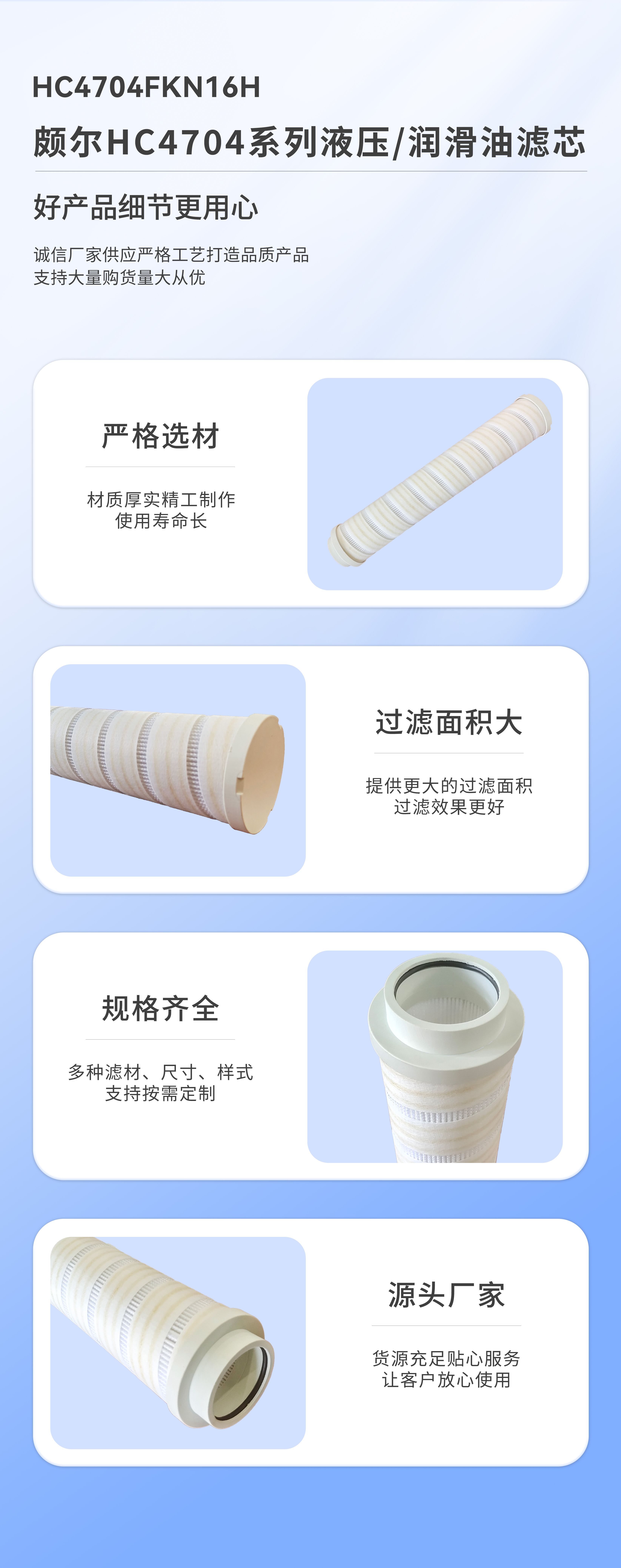 【產(chǎn)品簡介】:頗爾HC4704系列液壓潤滑油濾芯,過濾精度:6微米 過濾比β≥200 濾芯長度16英寸,密封圈材質:丁晴橡膠。