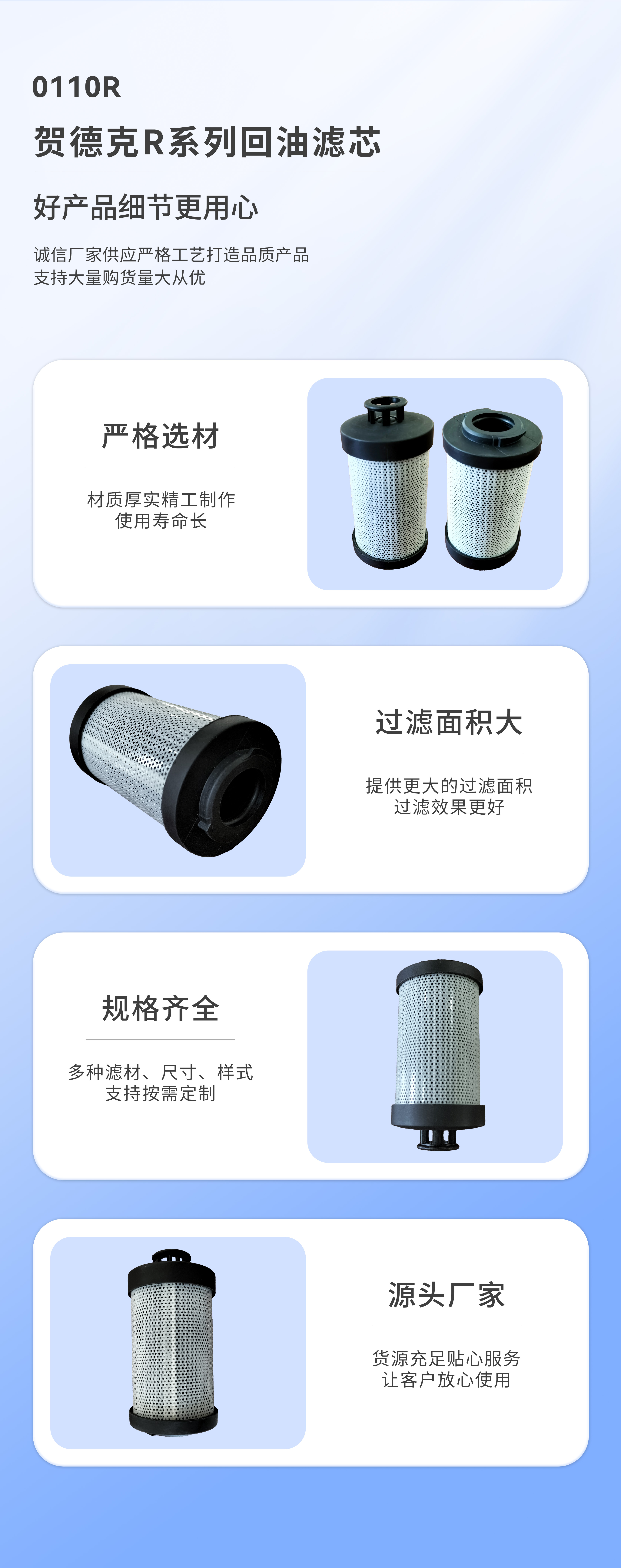 【產(chǎn)品簡介】:新鄉(xiāng)北方濾器廠家供應(yīng)賀德克R系列回油濾芯,流量:110L/min 精度:3、5、10、20微米可選。 賀德克濾芯具有過濾精度高、納污量大、使用更換方便等特點。