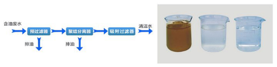 含油廢水處理設(shè)備采用全物理法、可靠、方便、的去除及回收含油污水中的分散油和乳化油,使處理后的排放水達(dá)到或超過《GB8978-96污水綜合排放標(biāo)準(zhǔn)》一級排放的要求(含油量小于5mg/L)。